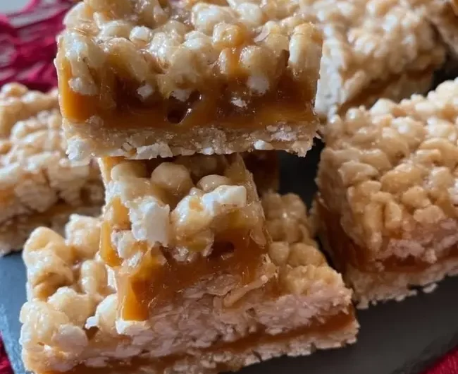 Barres au caramel croustillantes : le dessert carrément décadent qui fait hurler de joie les enfants pis les adultes qui redeviennent des kids ! Trois épaisseurs de pure folie : une base Rice Krispies moelleuse, un caramel fondant au lait concentré sucré qui tire comme dans les films, pis une deuxième couche croustillante qui scelle le tout. C’est le carré québécois version turbo, meilleur que les Turtles ou les Millionnaires du commerce, pis fait maison pour pas cher. Prêt en 20 minutes actives + réfrigération, c’est la recette à avoir sous la main pour les partys, les boîtes à lunch ou juste pour se pogner une crise de sucre un mardi soir !