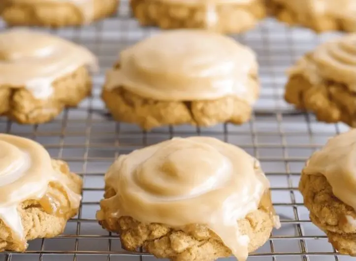 - Préparer le glaçage : Dans une casserole moyenne, combinez la cassonade, le beurre, et le jus de pomme, comme vous le précisez. Cuisez à feu moyen jusqu’à ce que le sucre soit dissous. Retirez du feu, ajoutez le sucre en poudre, et remuez jusqu’à obtenir une consistance crémeuse. Glacez immédiatement les biscuits refroidis.