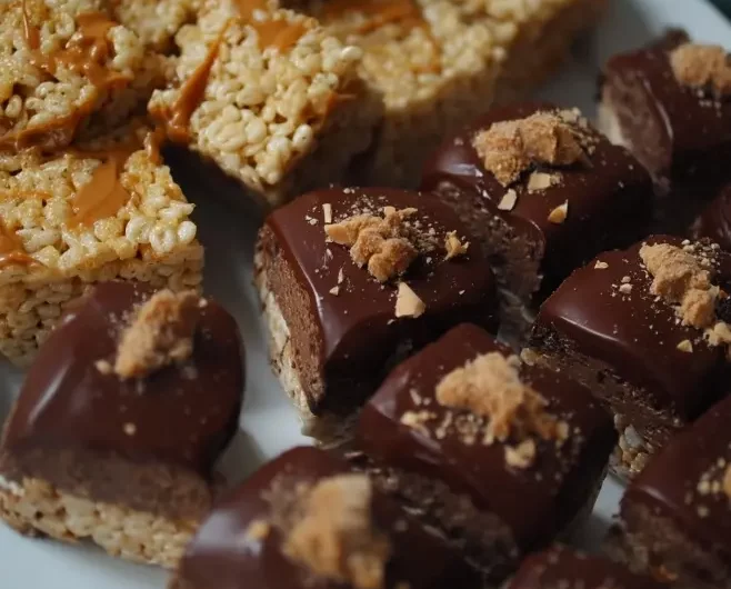 Les Carrés au Rice Krispies beurre d’arachide et chocolat sont une douceur québécoise croquante et savoureuse, parfaite pour une collation ou un dessert. Idéaux avec leur enrobage chocolaté, ils se dégustent avec plaisir. Bon appétit !
