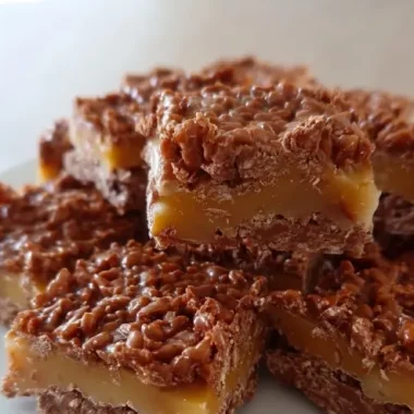 Petite casserole → cassonade + crème + sirop + beurre. Ébullition → mijote 3-4 min en brassant → épaissit légèrement. Verse brûlante sur les carrés.