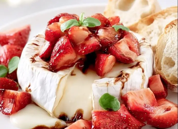 C’est la twist estivale pis sophistiquée du classique brie au four. Au lieu du miel habituel, on fait une réduction balsamique-érable qui caramélise légèrement pis qui équilibre l’acidité des fraises fraîches avec la richesse du fromage double crème. Les pacanes apportent le croquant, le basilic une fraîcheur herbacée qui explose en bouche. C’est inspiré des plateaux de fromages fancy des restos, mais fait maison pour 10 fois moins cher. Au Québec, avec nos fraises de l’Île d’Orléans pis notre sirop d’érable pur, c’est juste logique que ce soit aussi bon !