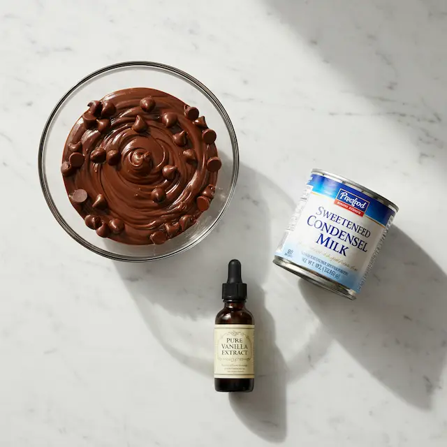 C’est la version ultra-simple du fudge traditionnel : pas de thermomètre, pas de cuisson longue, juste du chocolat au lait + lait condensé sucré qui fondent ensemble pour créer un fudge soyeux qui se coupe en carrés parfaits. Au Québec, c’est LE fudge qu’on retrouve dans toutes les boîtes à biscuits des Fêtes, souvent avec des noix ou des guimauves, parce qu’il est inratable pis que tout le monde en raffole.
