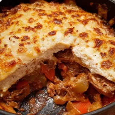 C’est la version québéco-mexicaine du bon vieux pain de viande : on garde la base de bœuf haché maigre, mais on booste avec une bonne dose de sauce BBQ, de la moutarde de Dijon, de la Worcestershire pis surtout des oignons caramélisés à la cassonade et au vinaigre de riz pour un goût sucré-salé fumé. Le maïs en crème pis en grains ajoute une texture crémeuse-croustillante, pis la chapelure gratine sous le grill pour une croûte dorée. Au Québec, c’est le genre de twist qu’on voit de plus en plus dans les cuisines familiales – on garde le confort du pâté chinois classique, mais on y met un petit kick épicé et sucré qui fait penser aux saveurs du sud.
