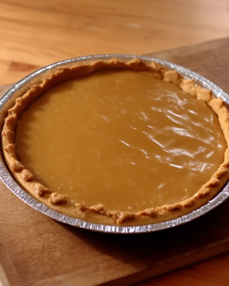 Retire du feu → ajoute beurre + vanille → brasse jusqu’à lisse. Refroidis 15-20 min → verse dans croûte pré-cuite.
