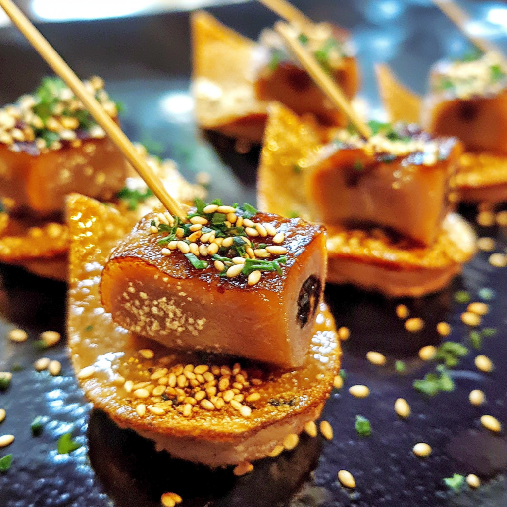 Voici quelques idées créatives pour présenter vos Tuiles Nougatine Sésame Foie Gras :